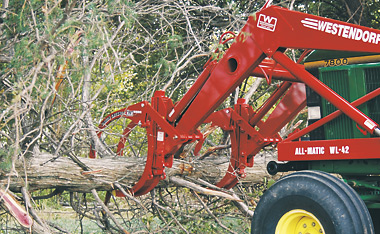 The new patented BC-5000 Brush Crusher™ makes those painful labor intensive tasks like clearing trees, handling brush, moving old equipment and debris a breeze! The BC-5000 model is the largest mechanical version in the Brush Crusher™ family. It is designed to fit on the larger Westendorf loaders, the TA-26 and up. It also adapts to fit other brand loaders. Complete list of non-Westendorf loader fits in column to the right.
