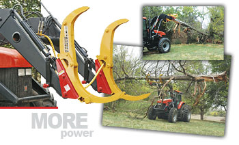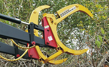 The new patented BC-6000 Brush Crusher™ makes clearing trees, handling brush, and many more items–painfree! The BC-6000 model is a larger model designed to work with the larger loaders equipped with the Snap- Attach™ system. Also adapts to fit other brand loaders. It has hydraulic cylinders enclosed inside the power-teeth to offer additional control for frequent tree and brush handling.
