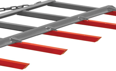 - Teeth are cut at a 45° angle so they don’t dig into floor boards when cleaning out the barn.
