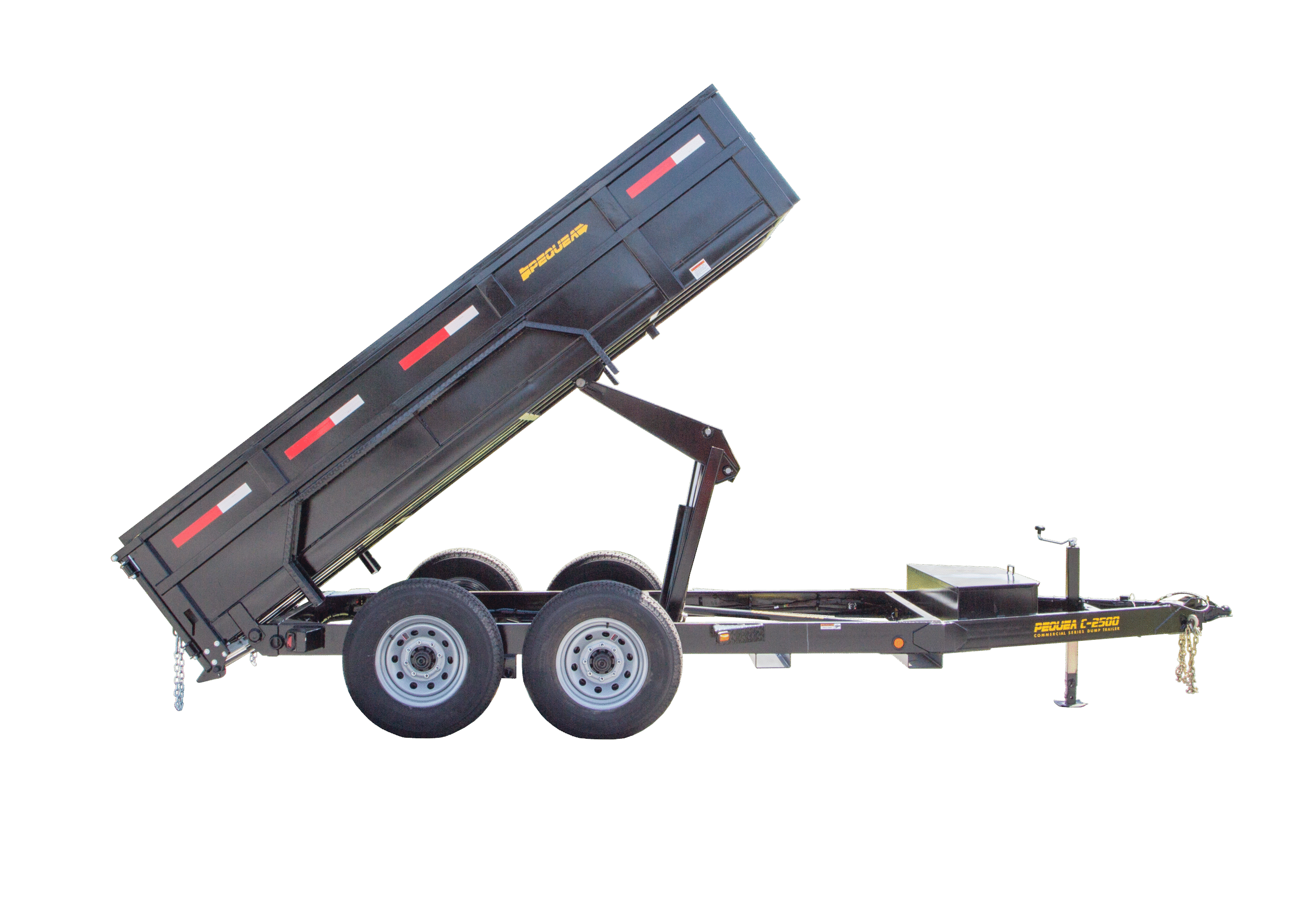 These low-profile dump trailers are designed to transport your equipment to the job site and then handle a massive payload with ease. The C2500, a low-profile commercial dump trailer, features a 78″ bed width and comes in 12′ and 14′ bed lengths.