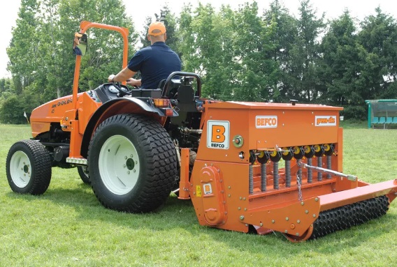 The Green-Rite is an innovative multi-functional machine designed to perform several essential lawn care operations simultaneously, making it a game-changer for efficient turf management. When equipped with an aerating rotor featuring straight blades on narrow flanges, the Green-Rite effectively aerates, overseeds, fertilizes, and compacts existing turf in a single pass.