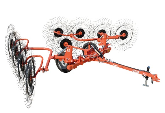 BEFCO wheel rakes are designed for efficient hay and straw collection, forming well-structured windrows for smooth pickup by round or square balers. Engineered for gentle handling, they fluff and turn hay to ensure uniform drying, optimizing both quality and baling efficiency. Pull-type wheel rakes are available in 8, 10, and 12-wheel configurations, designed for efficient hay and crop management. Equipped with double-action hydraulic cylinders, these rakes ensure easy transportation and storage, making them ideal for farmers, ranchers, and hay producers.