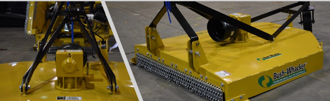 Bush-Whacker’s heavy duty single-spindle cutters are great for small areas of grass and small brush. It’s truly a great cut for your money. The Bush-Whacker units come standard with stump-jumpers and deck-rings, and when combined with 120HP gear boxes, you will be hard pressed to find a better value on the market today.