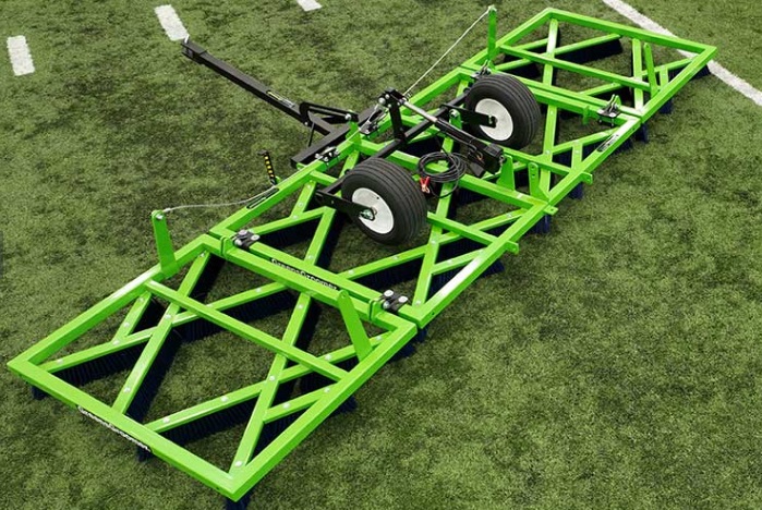 The extra-wide footprint is great for large facilities with multiple fields, reducing the time spent maintaining the synthetic turf for use. The wings fold-up for easy transport from field to field or storage to field.