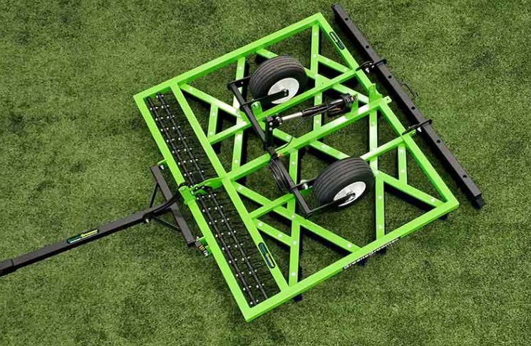 The Synthetic Sports Turf Groomer was redesigned in 2014 resulting in an improved brush design and increased grooming performance. We’ve taken the design a step further by incorporating an integrated Spring Tine Rake.