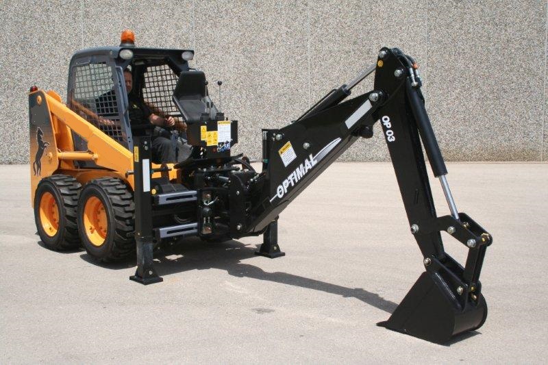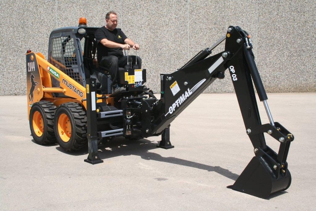 The Optimal backhoe is lightweight, to avoid loss of stability of the skid steer in motion. It is sensitised at the controls, to operate with great precision and safety.  It uses a very simple, very safe and very fast coupling system.